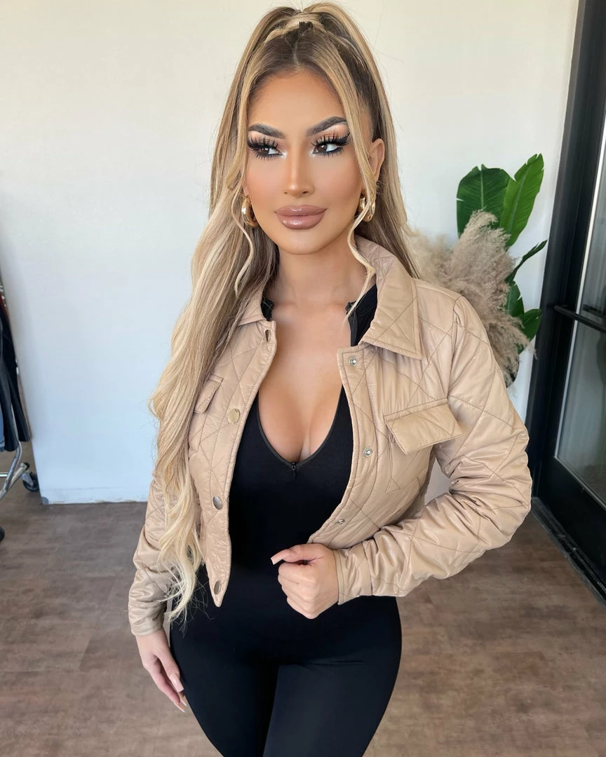 ~jacket made from nice puffy quilted material and has adjustable front button detail, Jacket goes great with many outfits and is perfect for cold weather