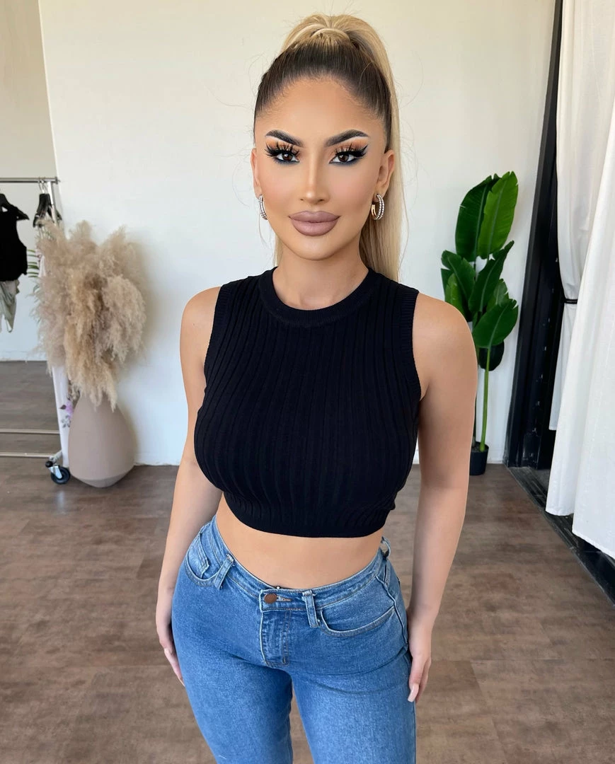 ~Top made from ribbed material with adjustable back tie detail, Top goes great with high rise bottoms and perfect for a nice hot day outÂ