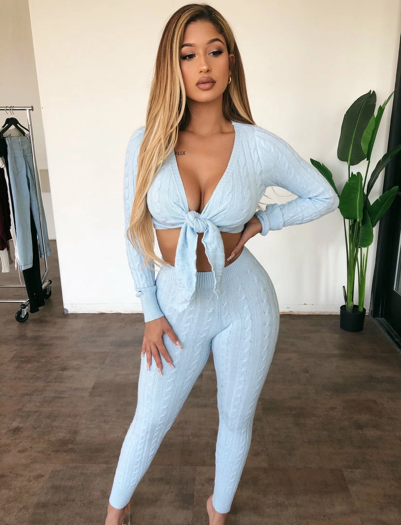 ~Matching set made from nice knit material with long sleeve top and pants for bottoms, Top is an adjustable front knot detail and is great for many occasions