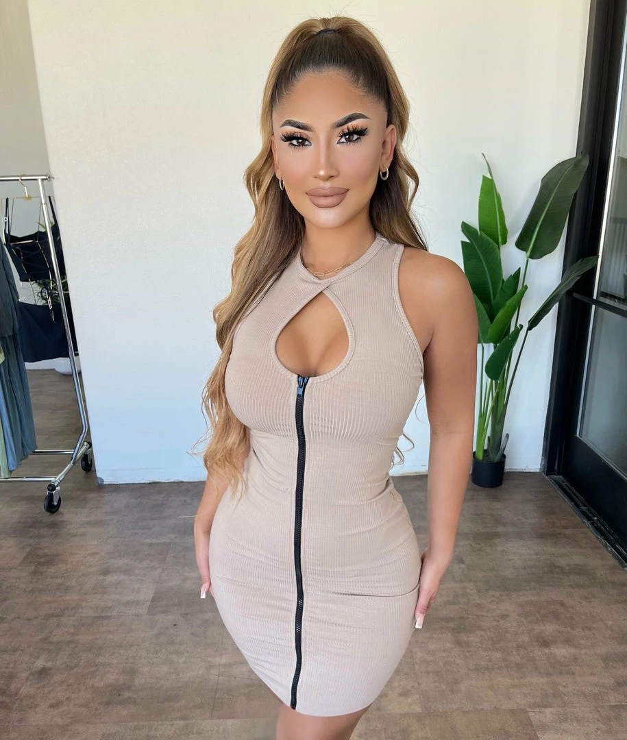Gorgeous ribbed open bust sleeveless zip up dress.