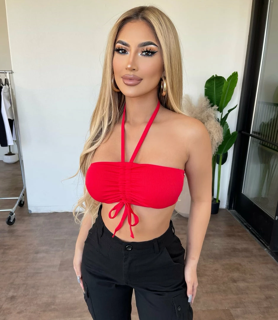 ~Top made from nice fitted material with adjustable tie string detail, Top goes great with high rise bottoms and perfect for many occasions