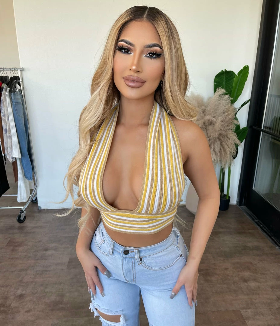 ~Halter top made from a ribbed knit material with adjustable neck tie detail, Top is perfect with many bottoms and great for many occasions like a nice day out