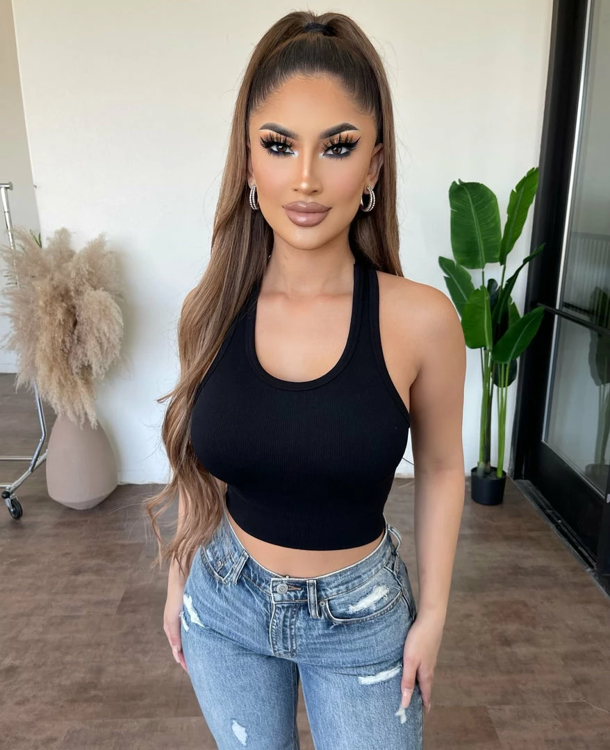 ~Top made from ribbed fitted material, Top goes great with jeans or biker short and is perfect for this hot summer weather