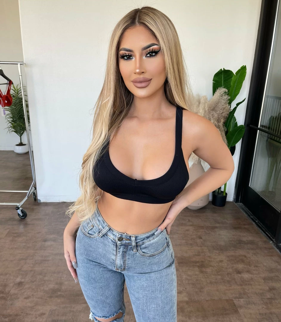 ~Crop top made from a nice soft ribbed material with Top goes great with a high rise distressed denim jeans and heels