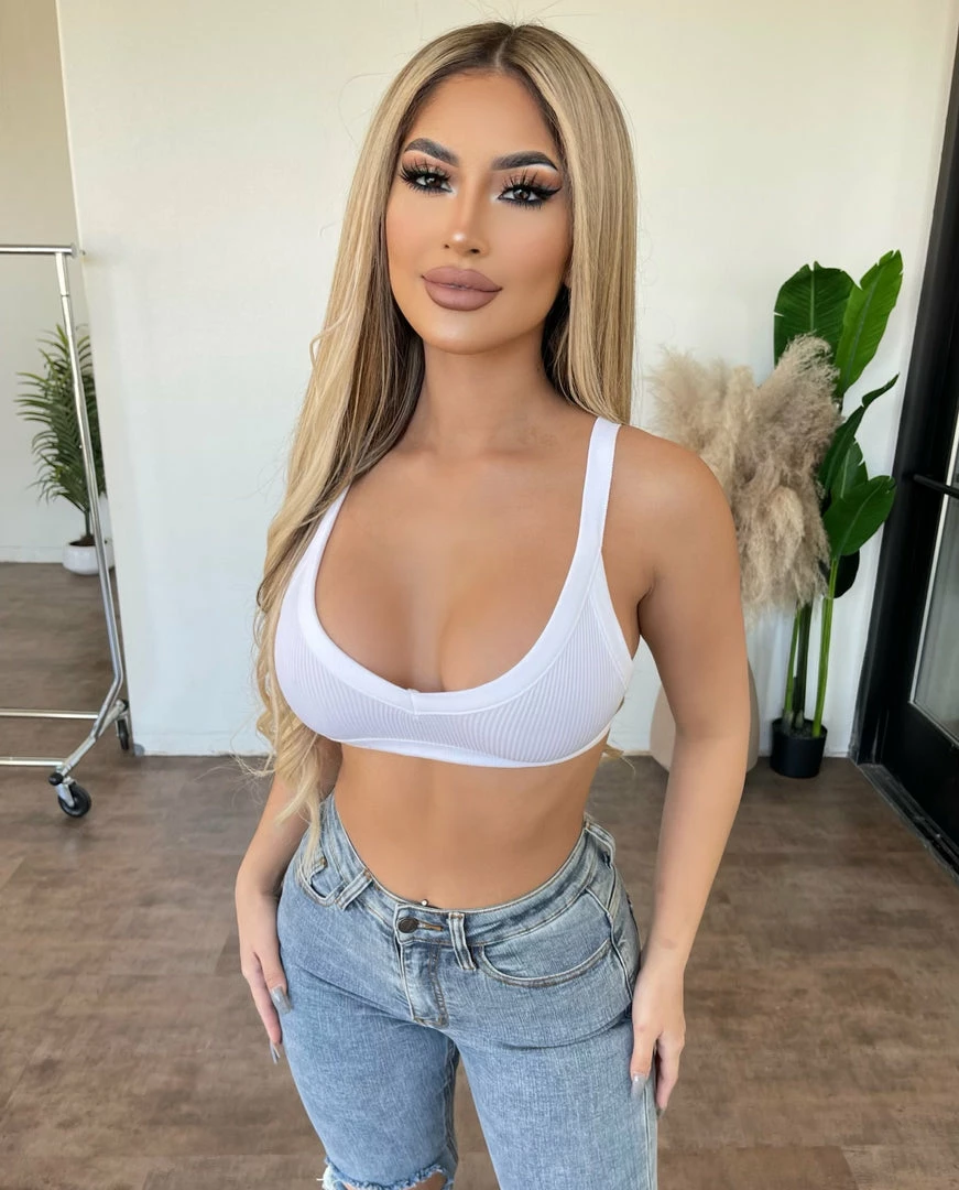 ANWND Tops Helen Cami Crop Ribbed Top(White)Final Sale