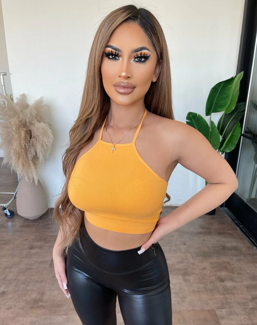 ~Top made from fitted ribbed material with adjustable back tie detail, Top goes great with high rise bottoms and perfect for a nice hot dayÂ