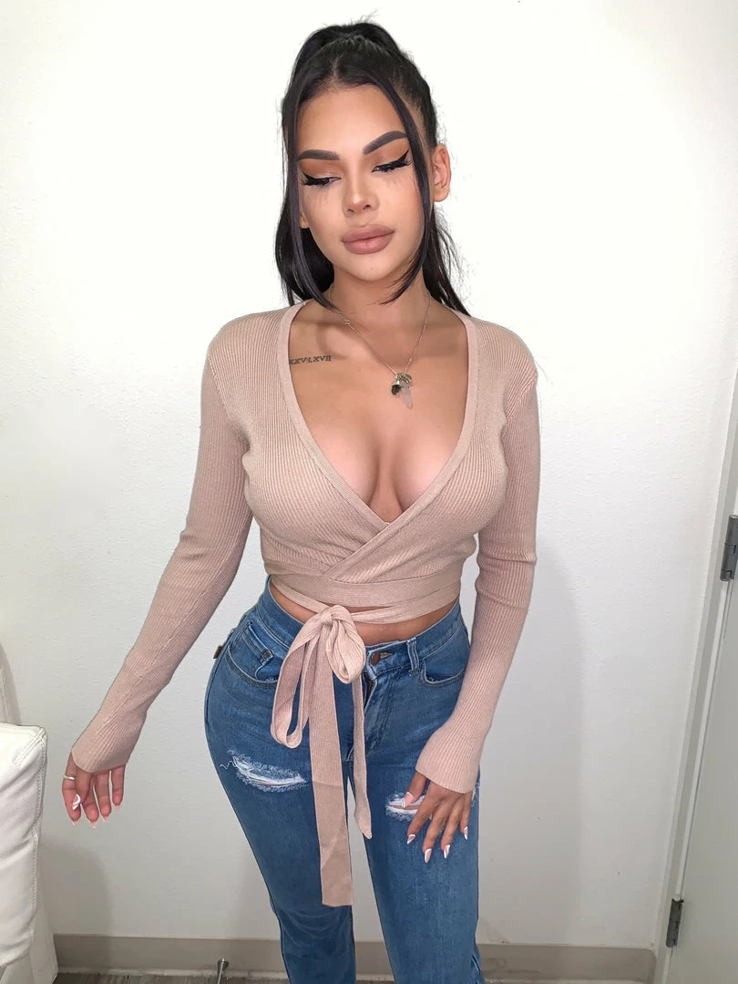 ~Long sleeve sweatshirt with adjustable waist wrap detail made from nice thick ribbed material, Top goes great with distressed denim bottoms and perfect for many occasions