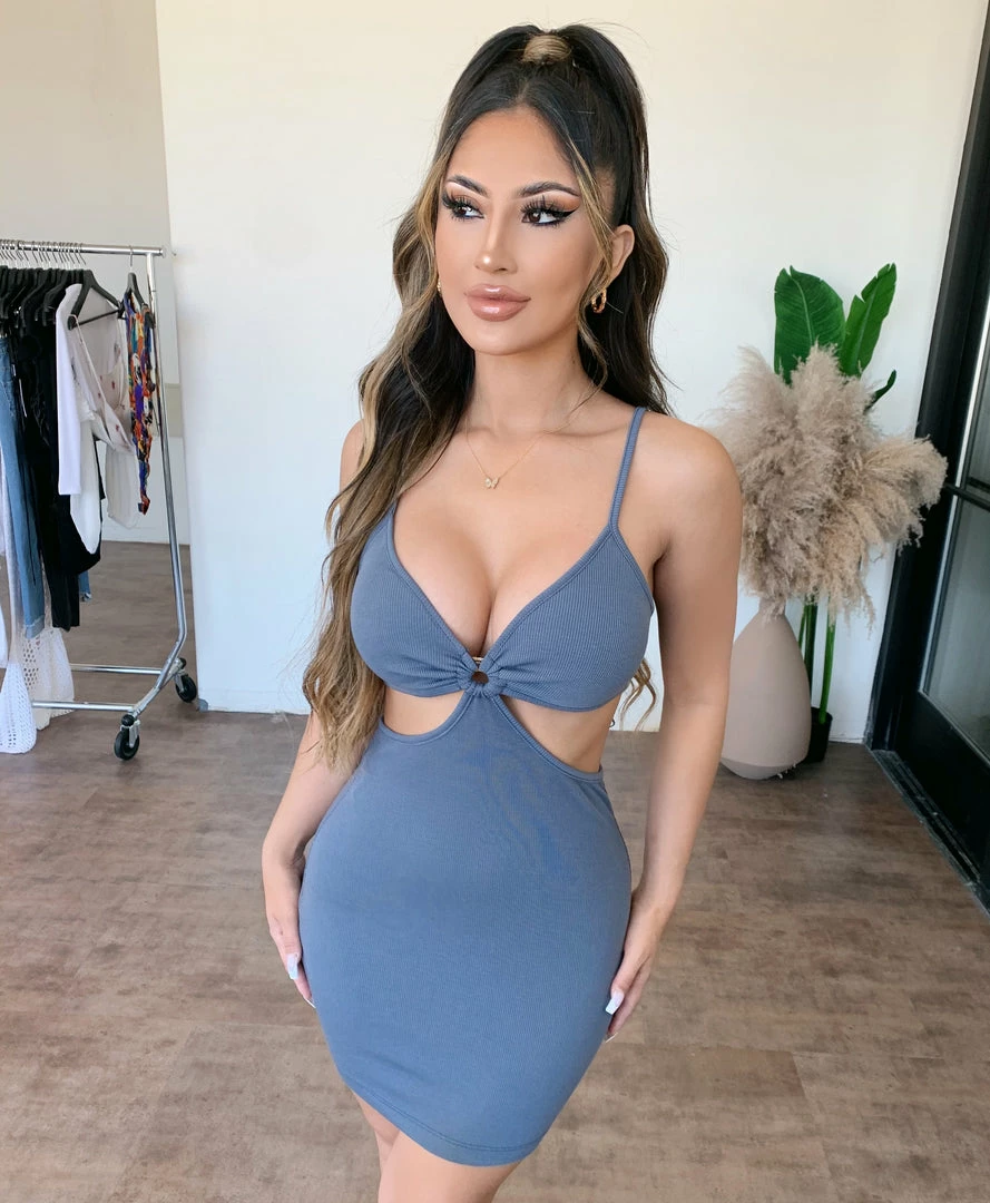 ~Dress made from ribbed material with front ring hole detail, Dress is great for a nice special occasions and perfect with a cropped jacketÂ