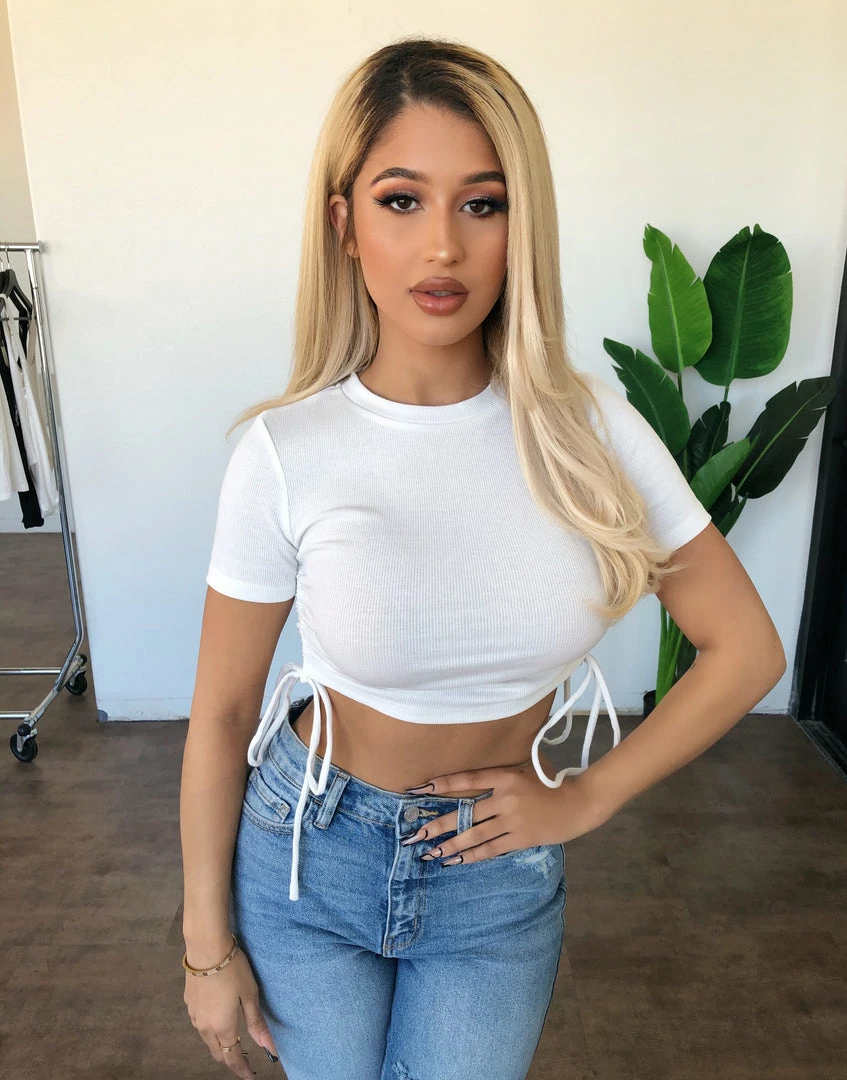 ~Short sleeve top made from ribbed material with adjustable side scrunch detail, Top is great for a nice day out and perfect with many bottoms