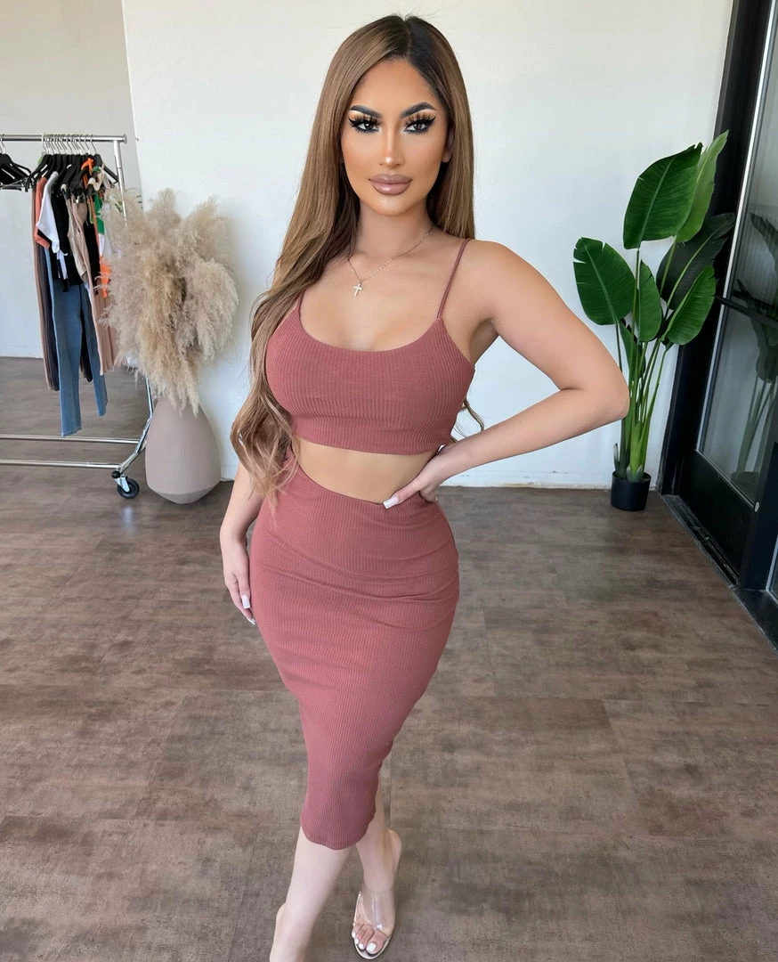 ~Matching set made from nice ribbed stretchy material with cami top and skirt for bottom, Matching set is great for a nice special occasions and perfect with a cropped jacket