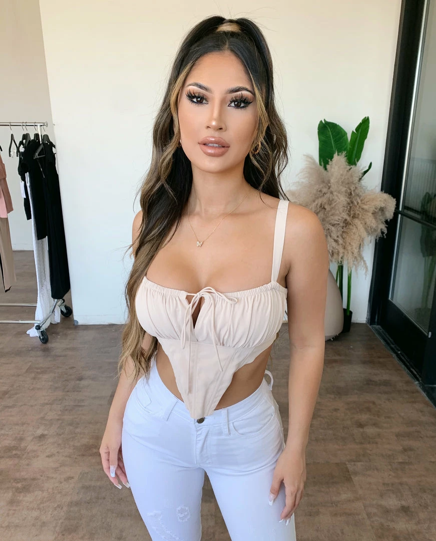 ~Top made from nice material with corset-style underwire, Top has non-adjustable cami straps and goes great with many of our high rise denim bottoms