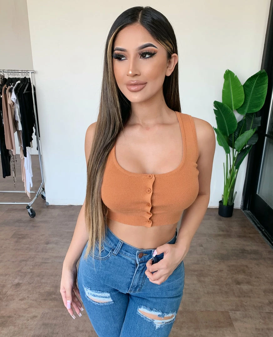 ~Top made from ribbed soft material with front button detail, Top is great for many occasions and perfect with high rise denim bottoms