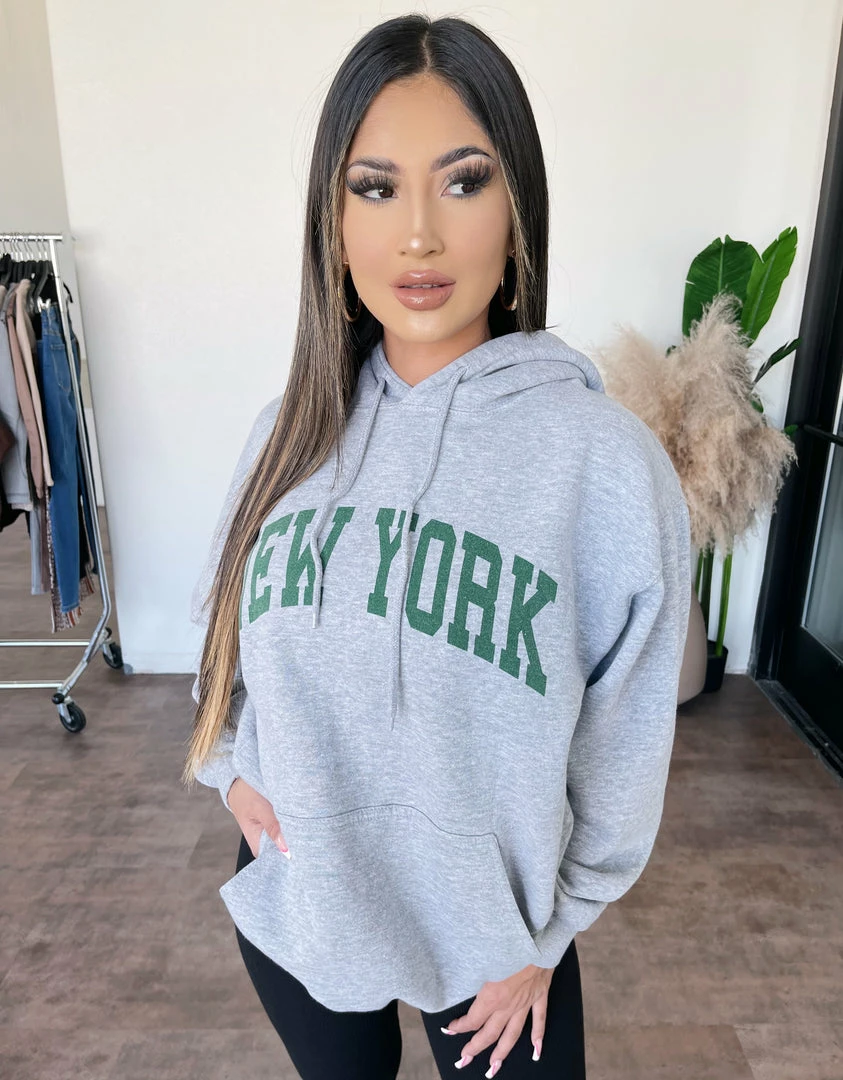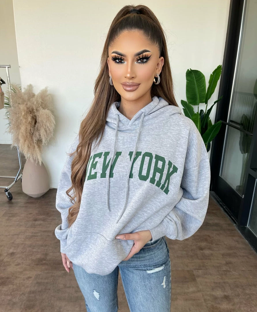 ~Hoodie made from soft material with green “New York” printed detail, Hoodie is great for a nice day or night out and perfect with many bottoms