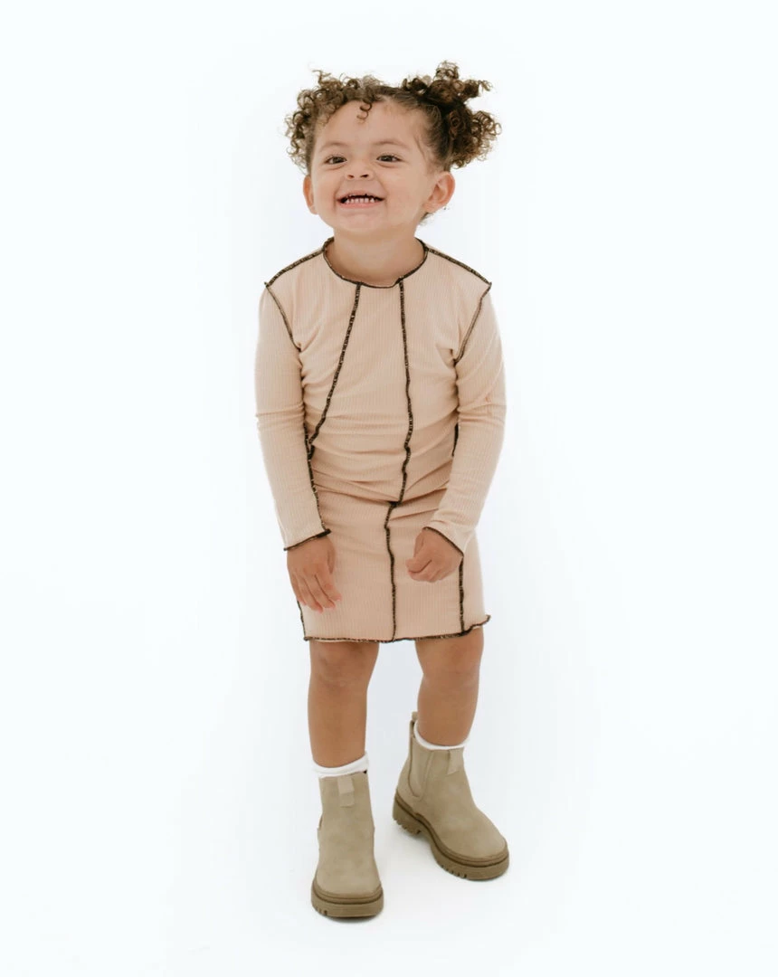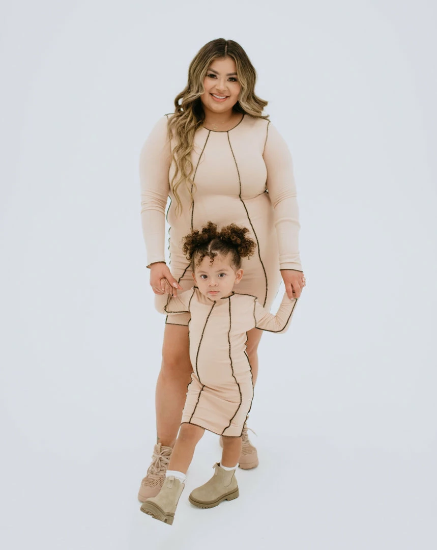 BABY E Mommy’s Girl Long Sleeve Dress (Nude/Brown)(Baby) Tops
