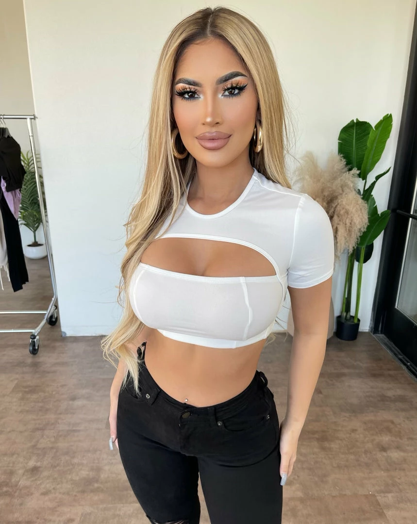 ~short sleeve top is made from nice ribbed soft material and has front chest keyhole detail, Top is great for a nice special occasion and perfect with denim distress jeans