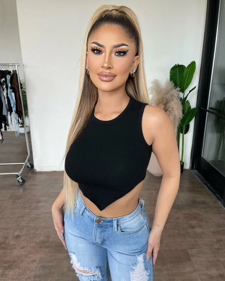 ~Top made from ribbed material with nice front cut detail, Top goes great with many high rise bottoms and perfect for a nice day or night outÂ