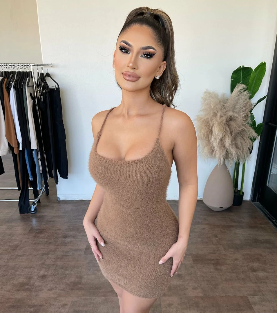 ~Dress made from a nice soft knit fuzzy material with nice open back lace tie detail, Dress is perfect for a special night out or special occasion.Â