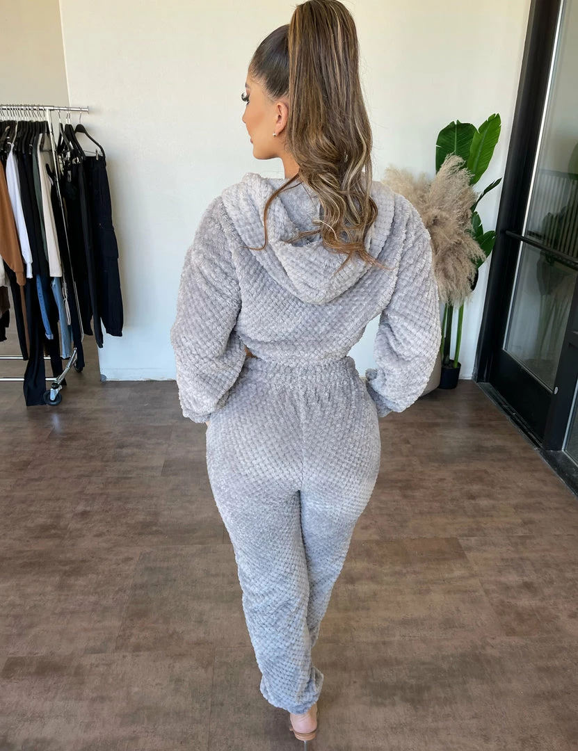 ~Set made from soft fluffy waffle material with a hoodie for a top and jogger sweat for bottoms, Set is perfect for special nights out or holiday outfits.