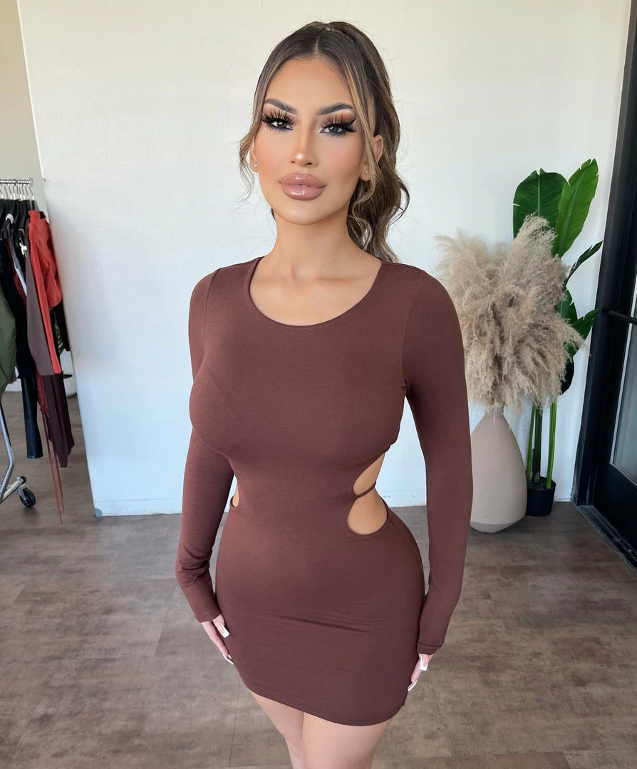 ~Long sleeve dress made from nice stretchy fitted material with open back detail, Dress is great for a nice night out and perfect with a cropped denim jacket