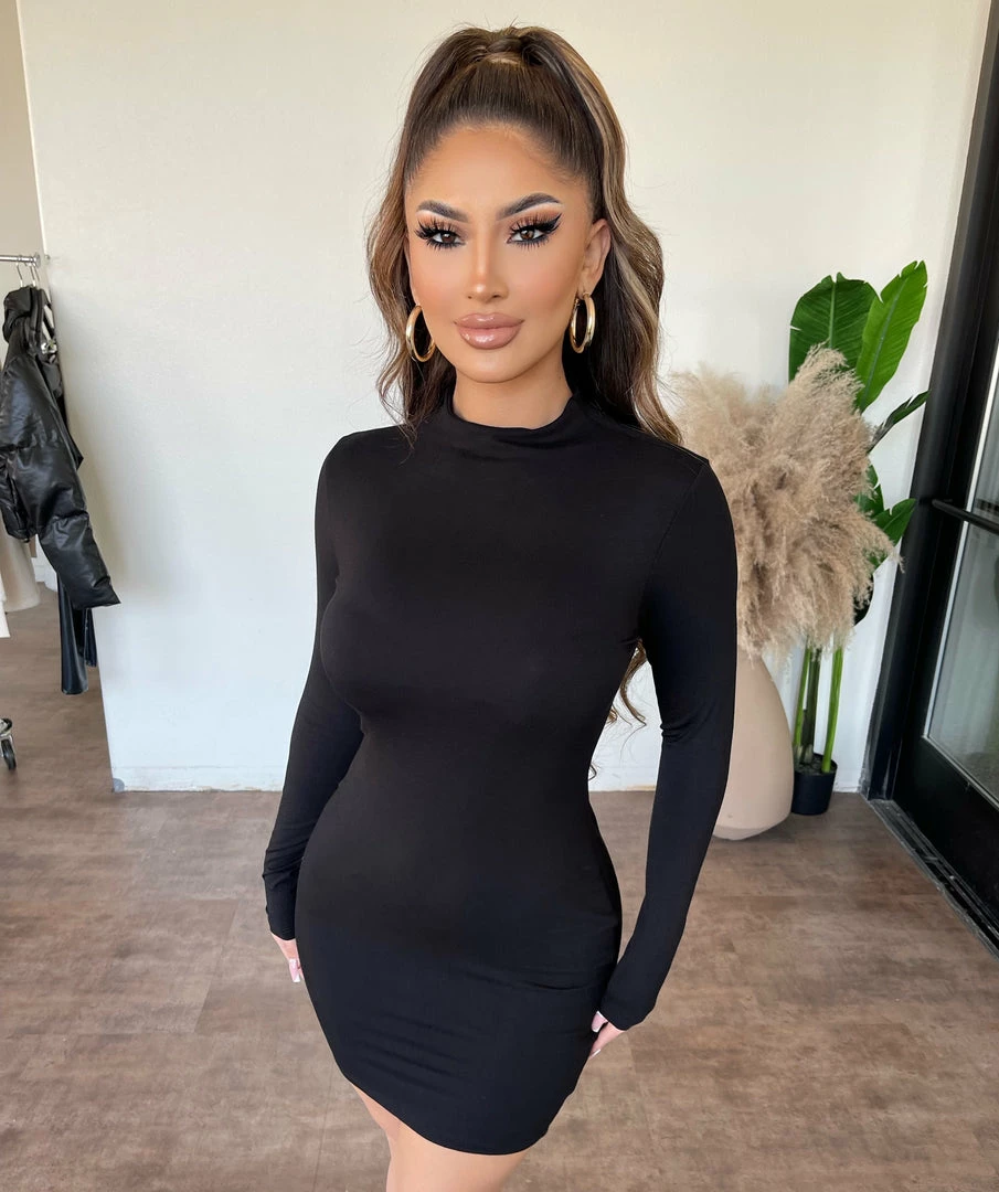 ~Long sleeve dress made from soft fitted material, Dress goes great with heels and a cropped jacket