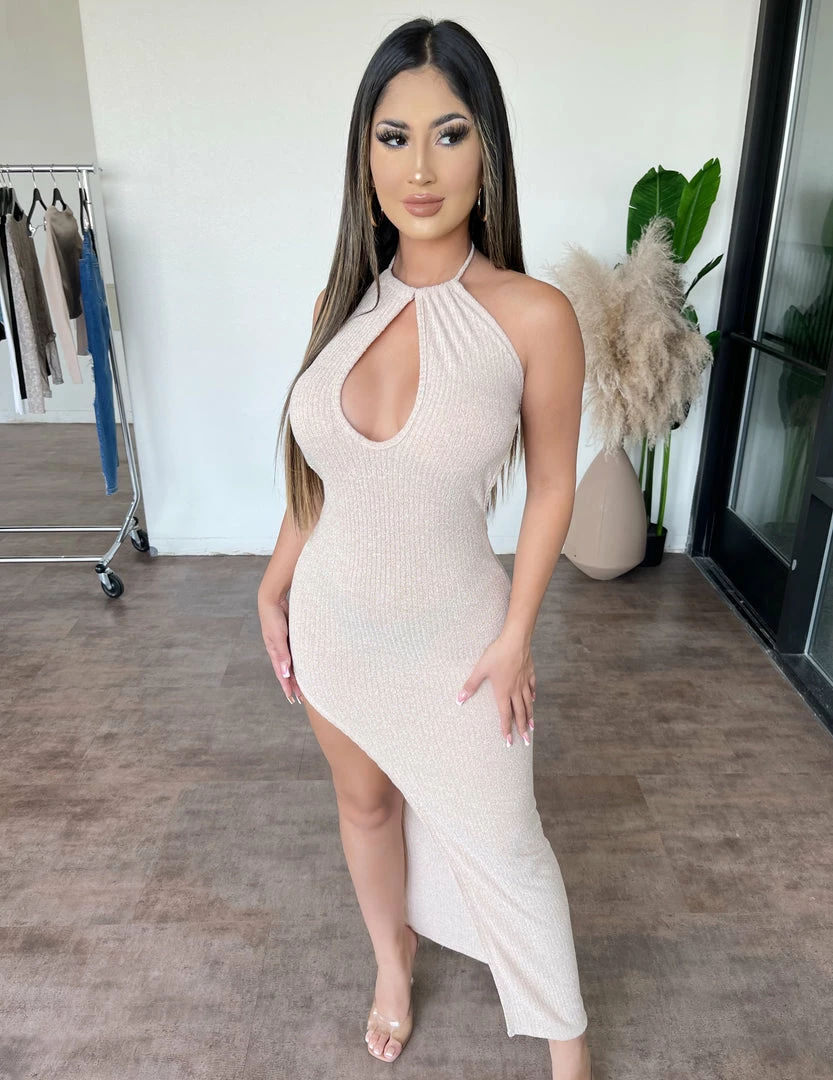 ~Dress made from ribbed material with nice key hole detail , Dress goes great with heels and perfect for a special night out