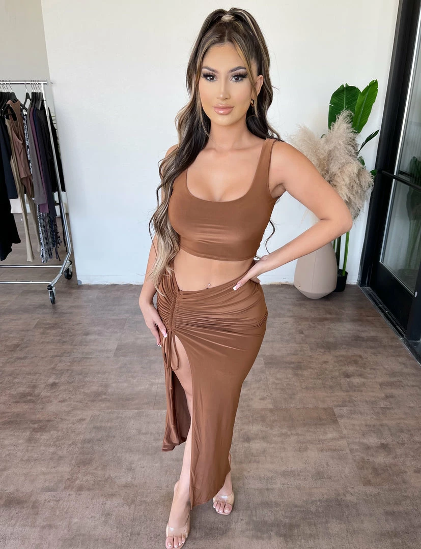 ~Set made from stretchy fitted material with tank top and skirt for bottoms, Set goes great with many heels and perfect for a nice special occasion