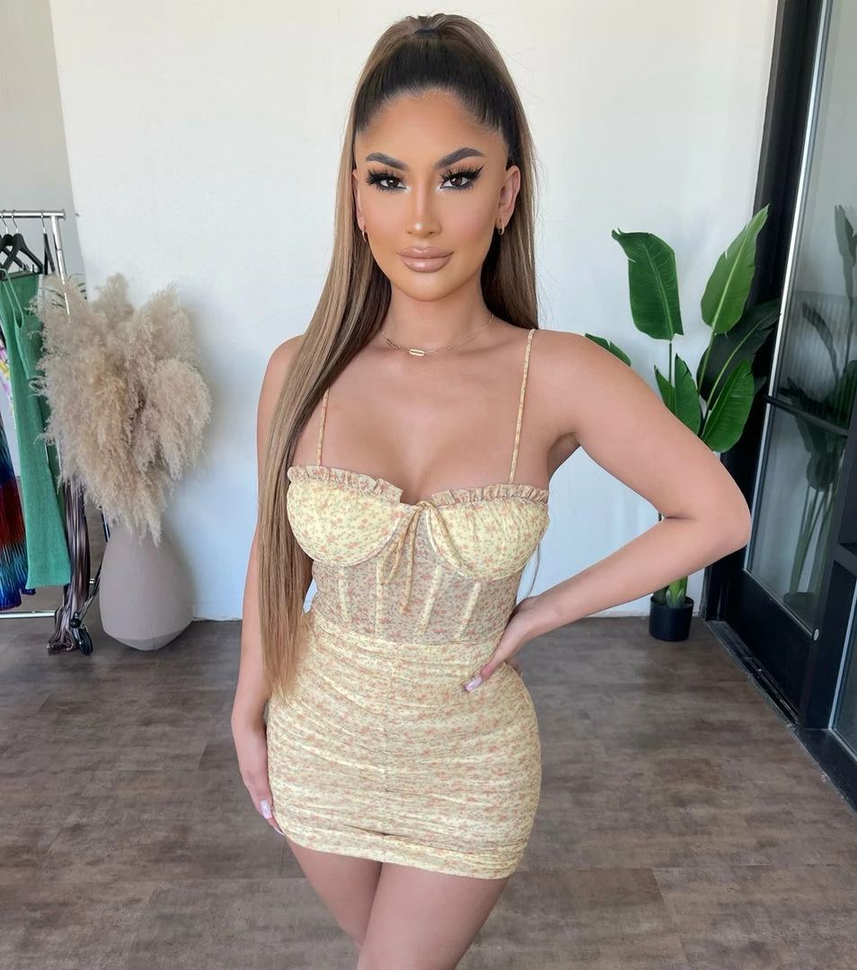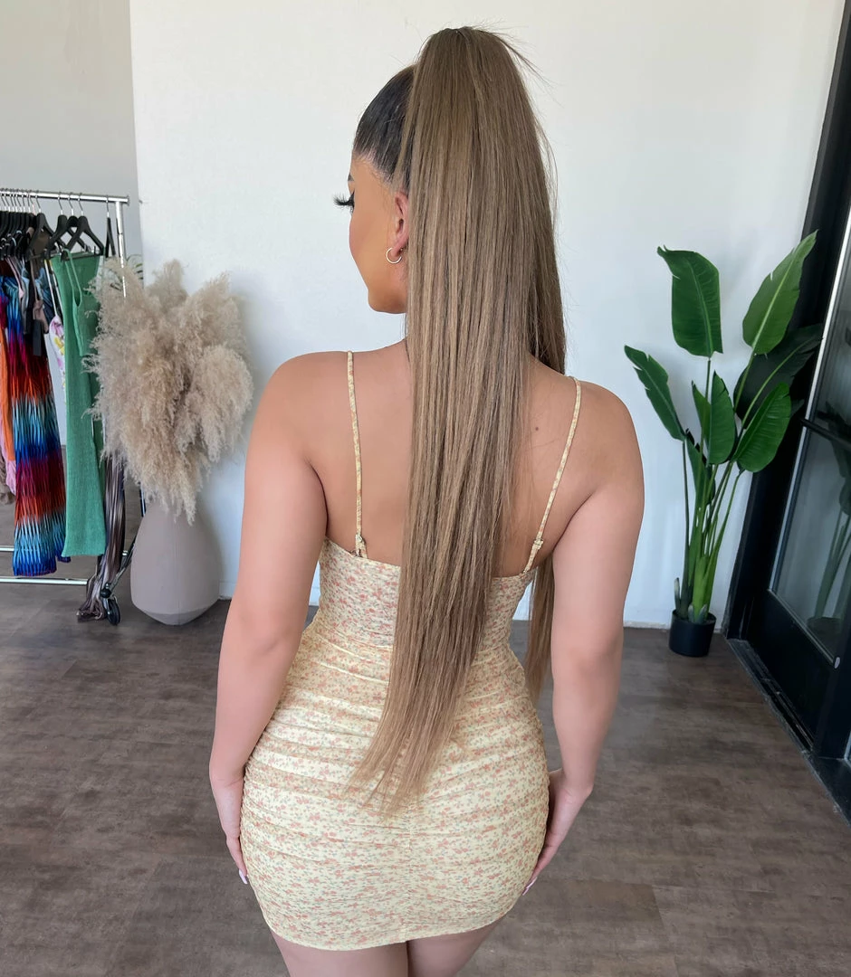 Gorgeous Floral Mesh Ruched Mini Dress.