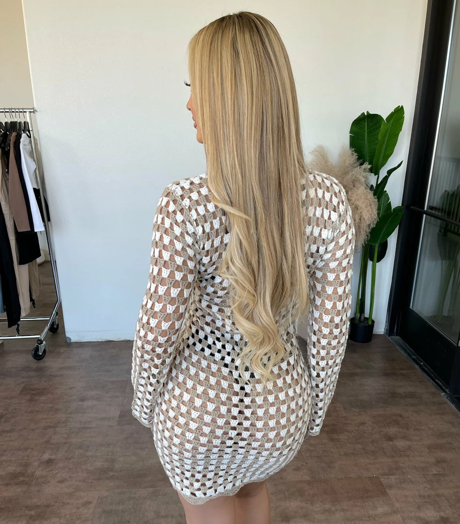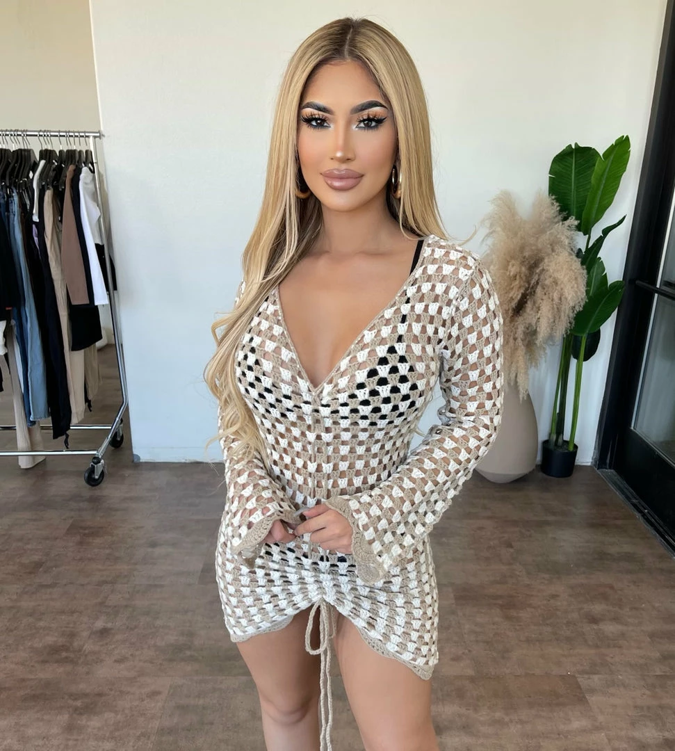 ~Dress made from nice crochet material Dress perfect for a girl’s night out and goes great with heels or sandals.