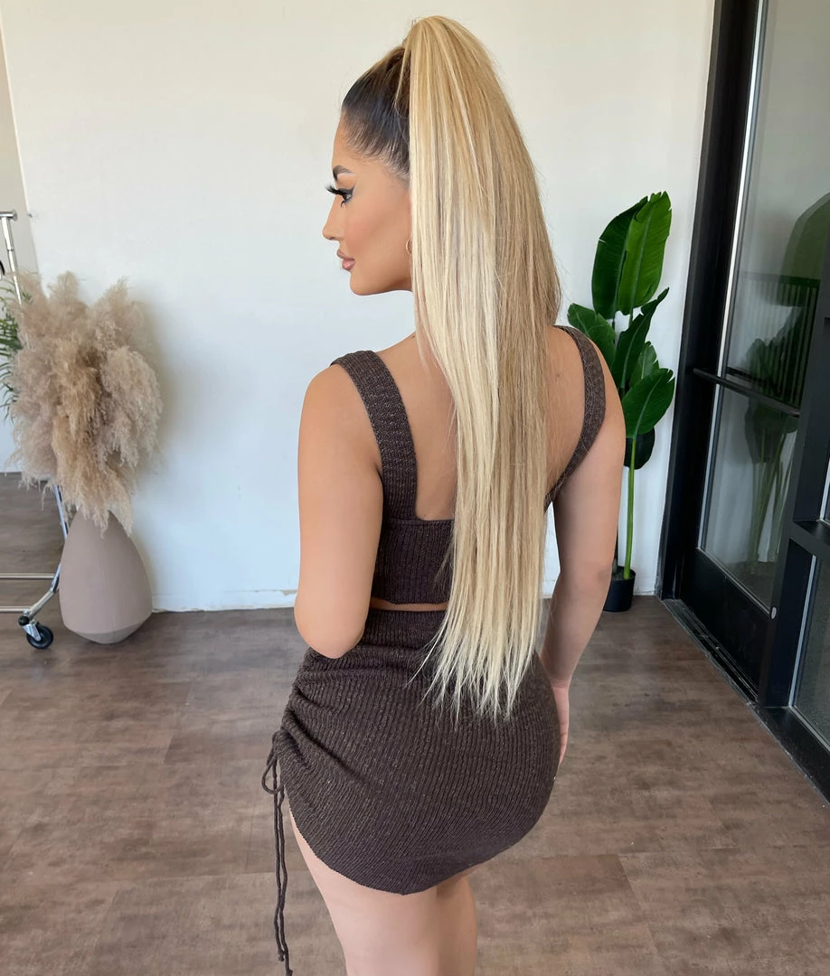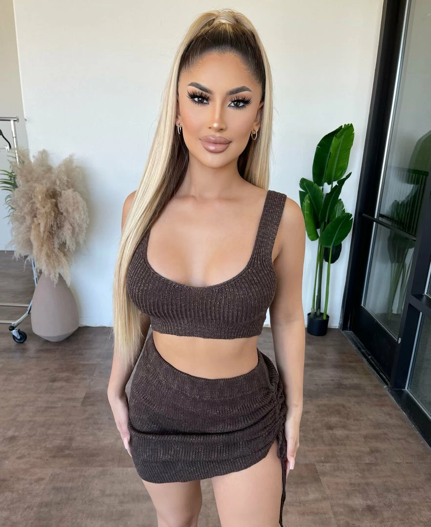 ~Matching set made from nice knit material with tank top and skirt for bottom, Skirt has adjustable side scrunch detail and goes great with many heelsÂ