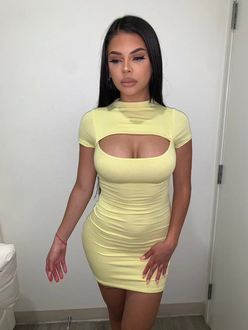 ~Short sleeve dress made from nice stretchy material and has front chest key hole detail, Dress is great for a nice special occasion and perfect with a cropped jacket