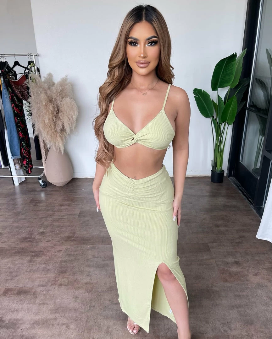 Evenuel Elsa Ribbed Skirt Set(Sage) Tops