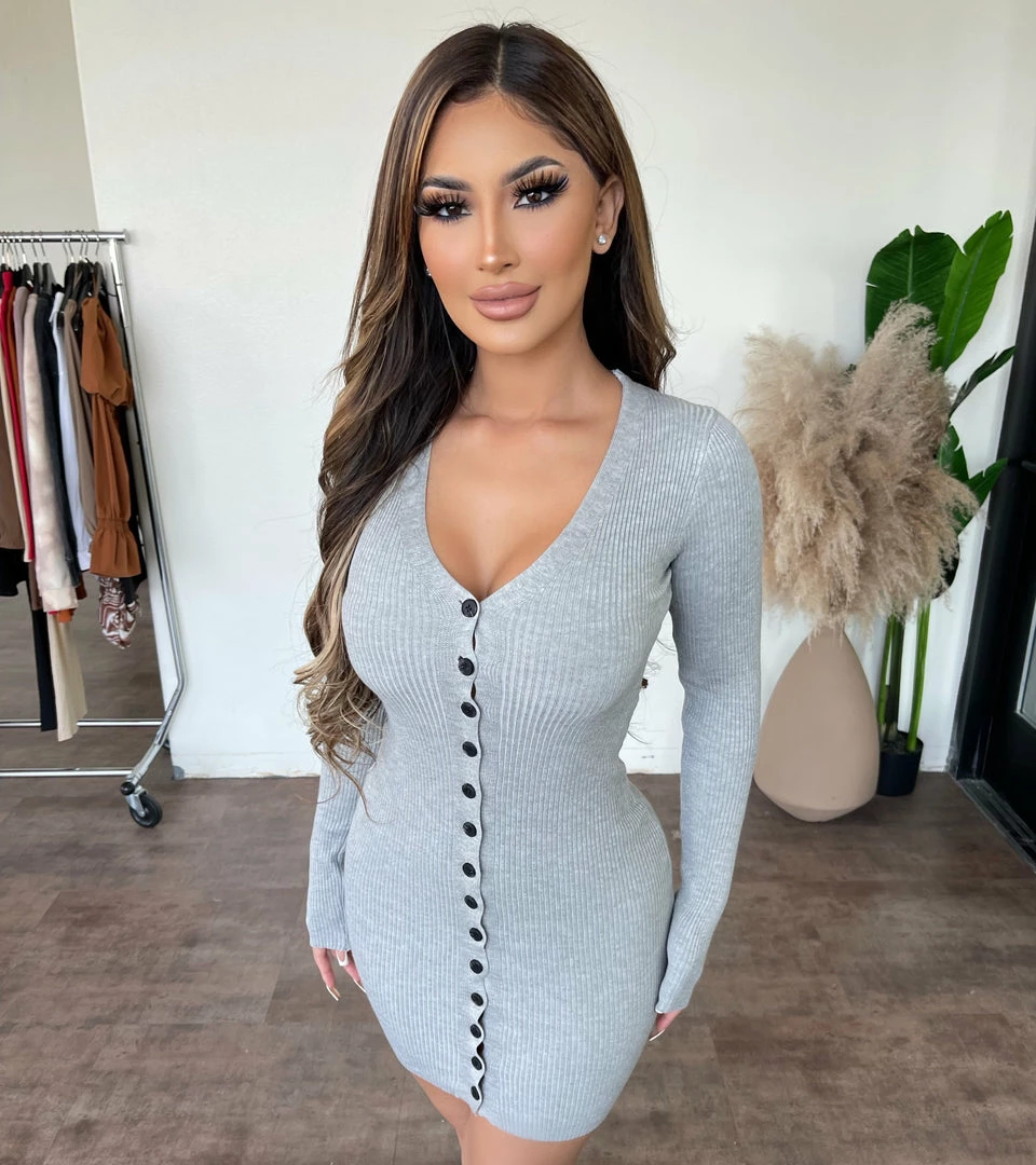 ~Long sleeve dress made from nice ribbed material and has adjustable front button detail and is perfect for a nice night out
