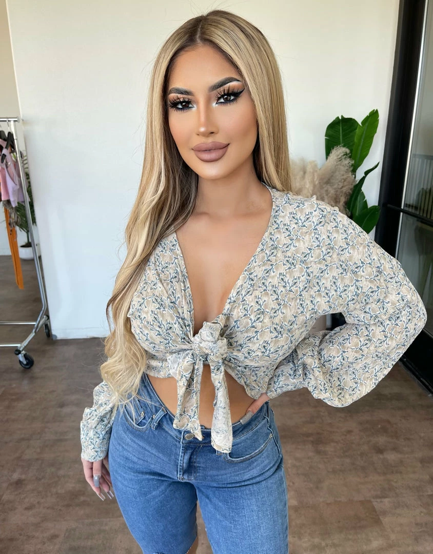 Final Touch Lily Long Sleeve Knot Top(Oatmeal Combo)
