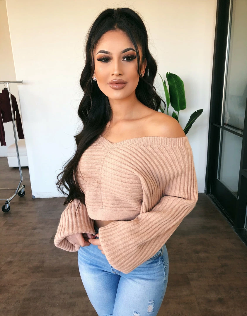 Hey Babe Tops Sasha Sweater Top(Nude)(FINAL SALE)
