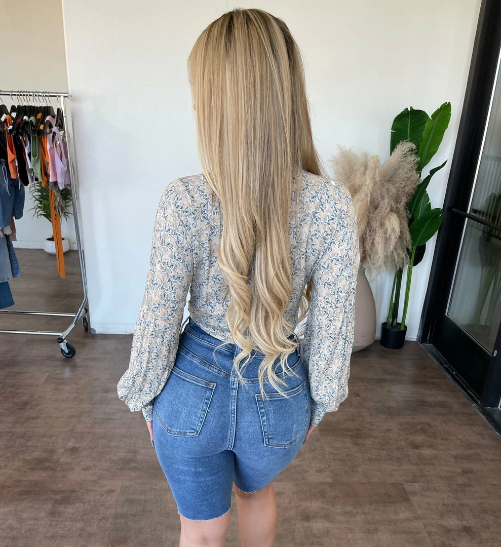 ~High rise shorts made from nice fitted material with distressed detail, Shorts go great with many tops and are perfect with heels or sneakers