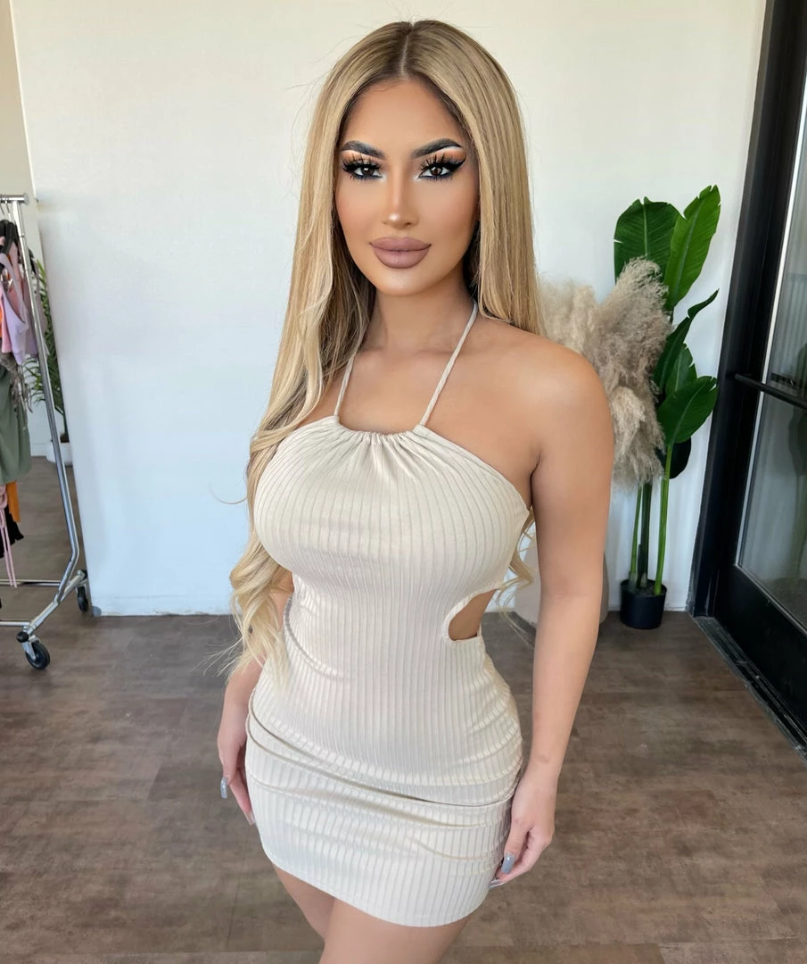 ~Dress made from a ribbed material. The dress goes great with heels and is perfect for a special night out