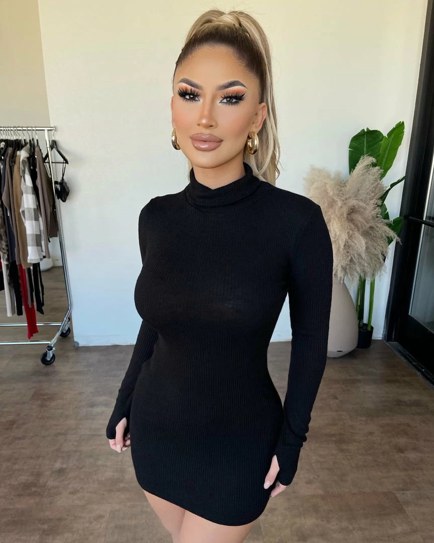 ~Dress made from nice fitted ribbed material with thumb hole detail on sleeves, Dress goes great with many heels and perfect for a nice night outÂ