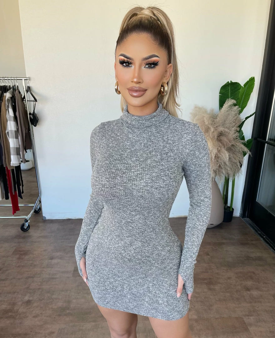 ~Dress made from nice fitted ribbed material with thumb hole detail on sleeves, Dress goes great with many heels and perfect for a nice night outÂ