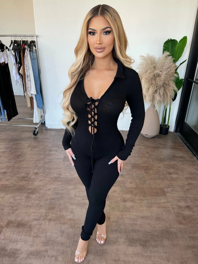 ~Jumpsuit made from nice soft ribbed material with lace front also collar detail, Jumpsuit is going great with heels or sandals