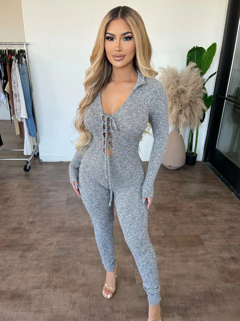 ~Jumpsuit made from nice soft ribbed material with lace front also collar detail, Jumpsuit is going great with heels or sandals