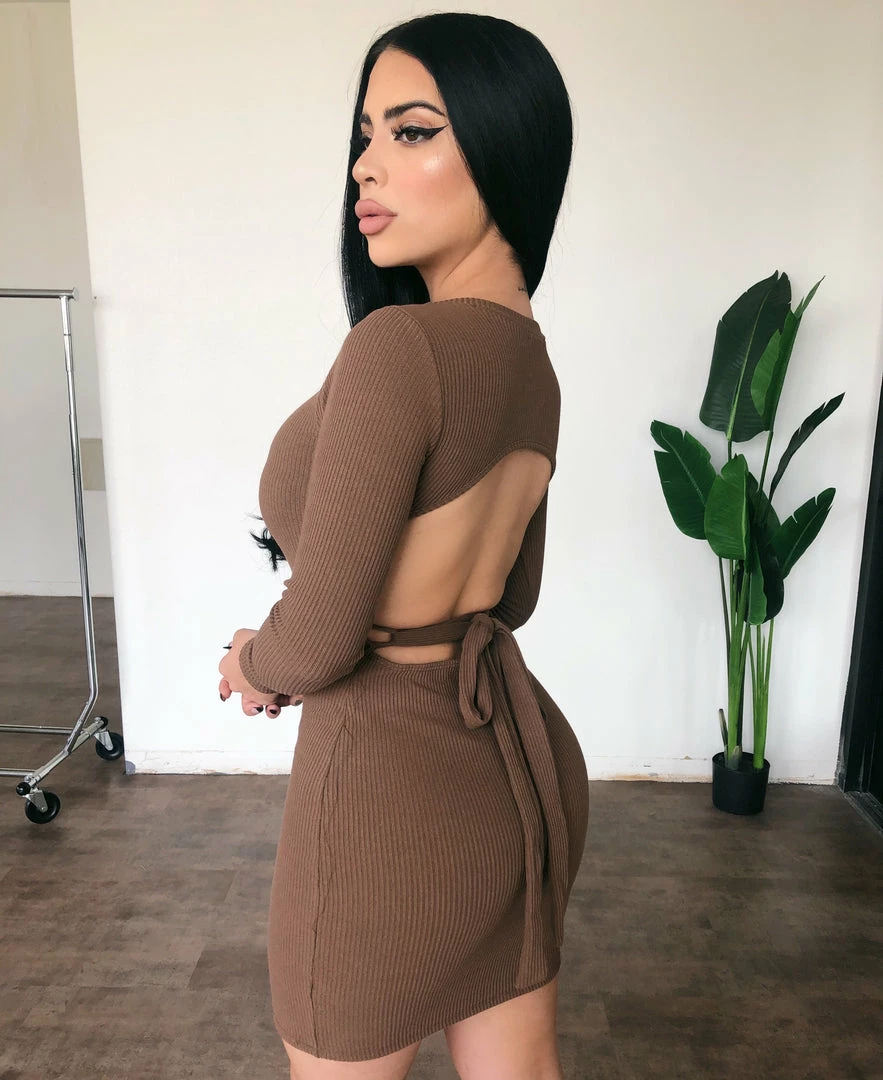~Dress made from ribbed material with open back detail, Dress has an adjustable back tie detail and is great for many special occasions