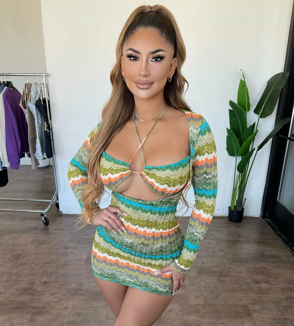 Beautiful long sleeve , front tie dress.
