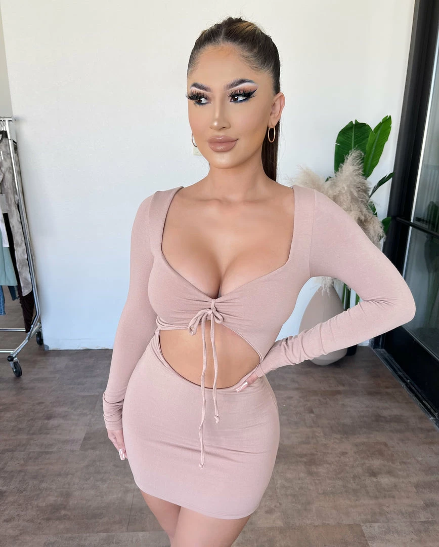 ~Dress made from soft fitted material with faux front knot detail, Dress has a nice front open stomach detail and is great with heels or sneakers
