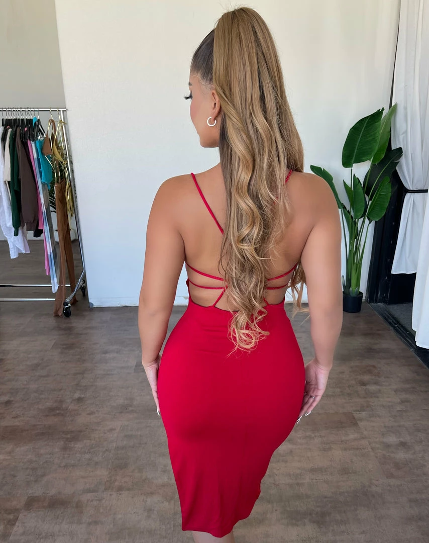 Gorgeous V-Neck ,back lace up bodycon dress.