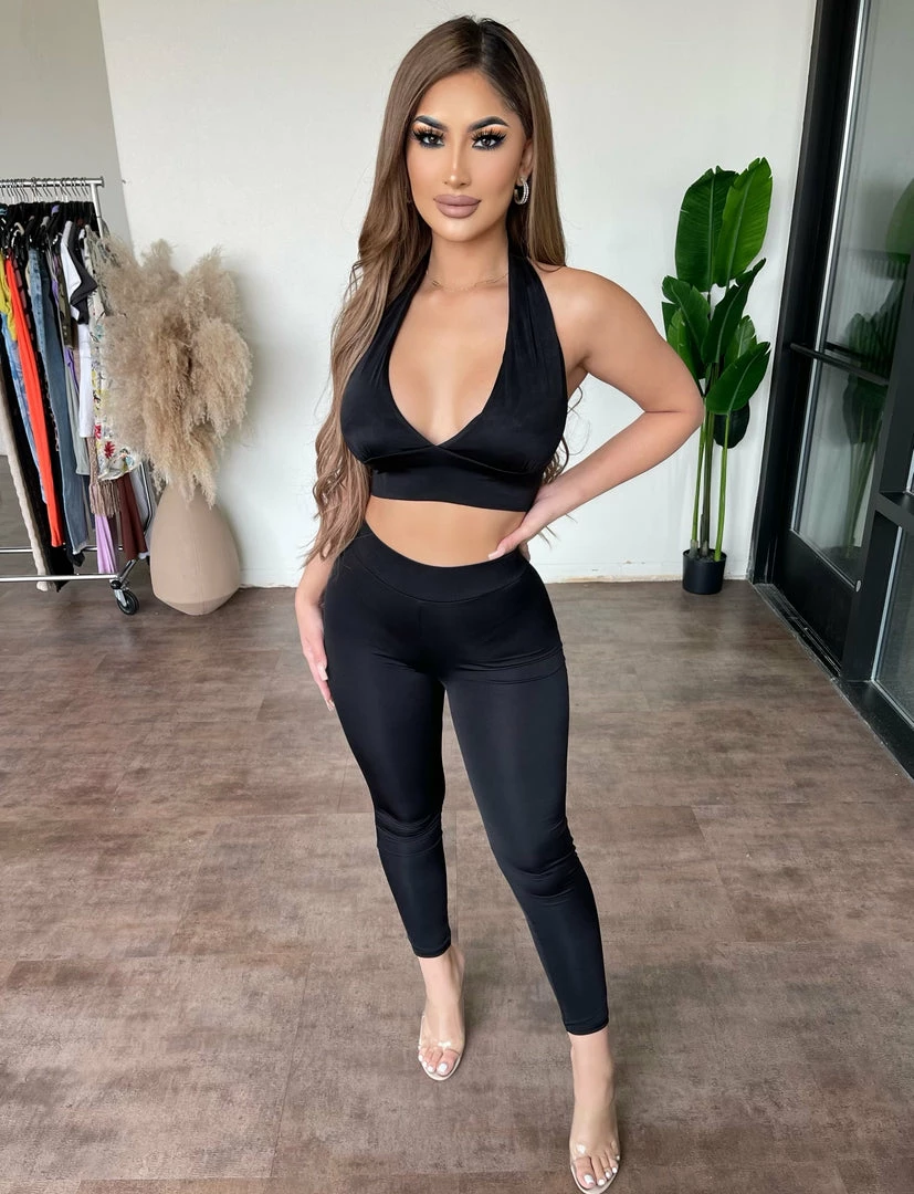 ~Set made from nice soft material with halter top and pants for bottoms, Set is great for a nice night out and perfect with heels