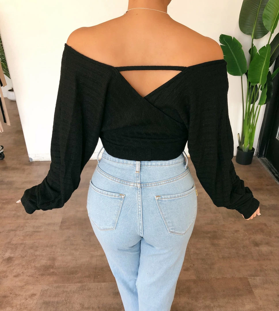 ~Long sleeve top made from knit material with faux front wrap detail, Top is great for a nice night out and nice with denim bottoms and heels
