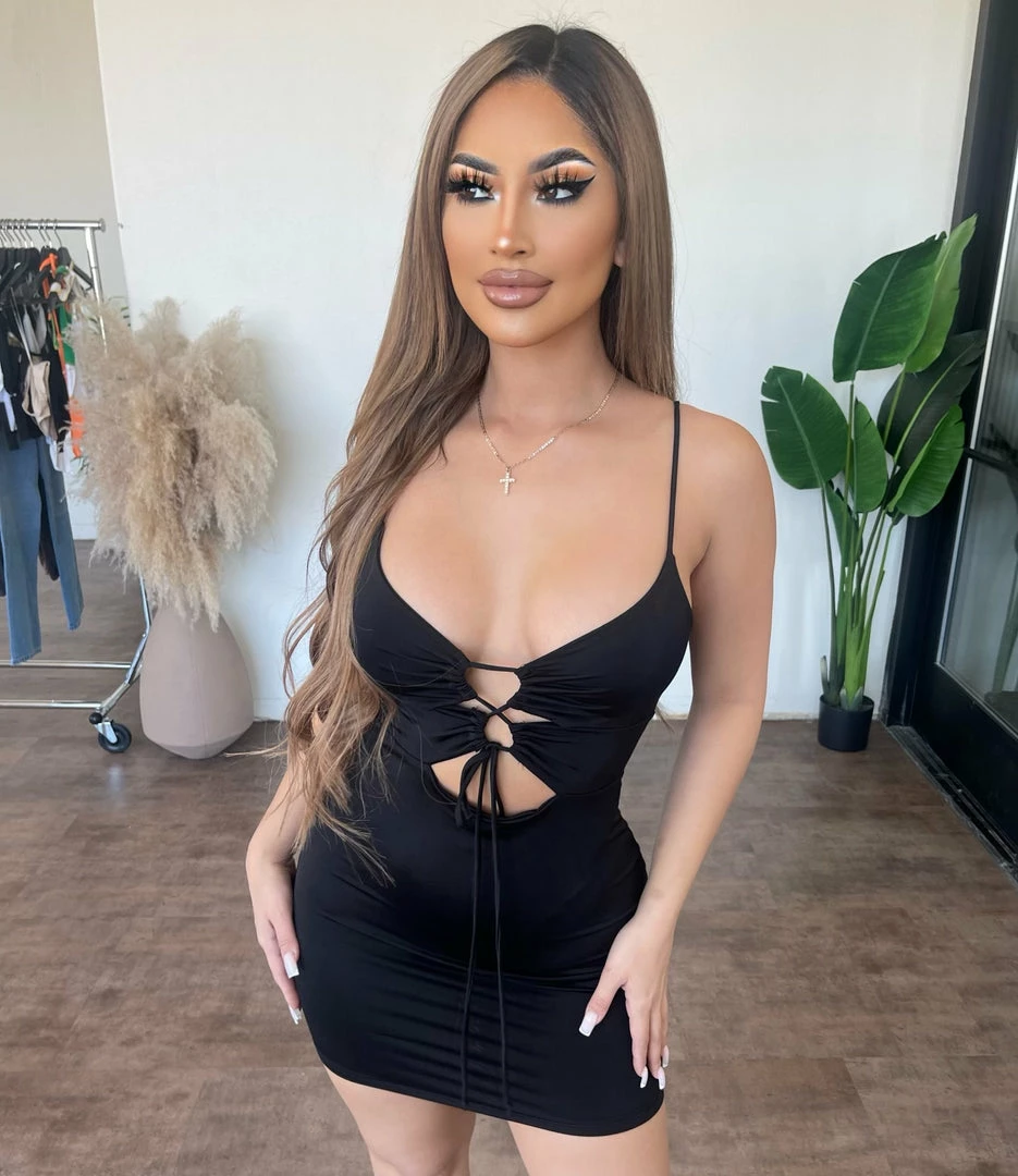~Dress made from fitted material with adjustable front tie detail, Dress goes great with a cropped jacket and perfect for a nice night outÂ