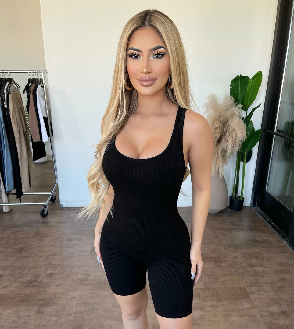 ~Tank romper made from nice ribbed fitted material. Romper goes great with a cropped jacket and is perfect with nice heels