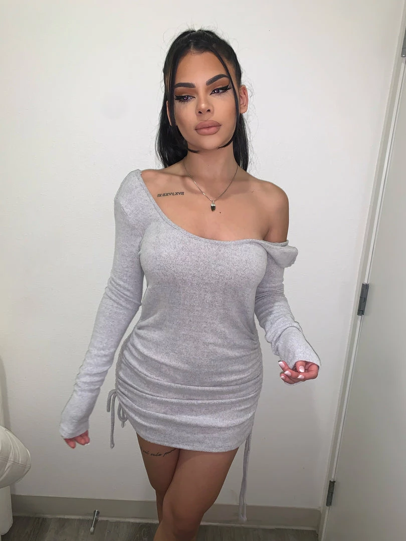 ~Dress made from soft fitted material with adjustable side drawstring detail, Dress goes great with a cropped jacket and heelsÂ