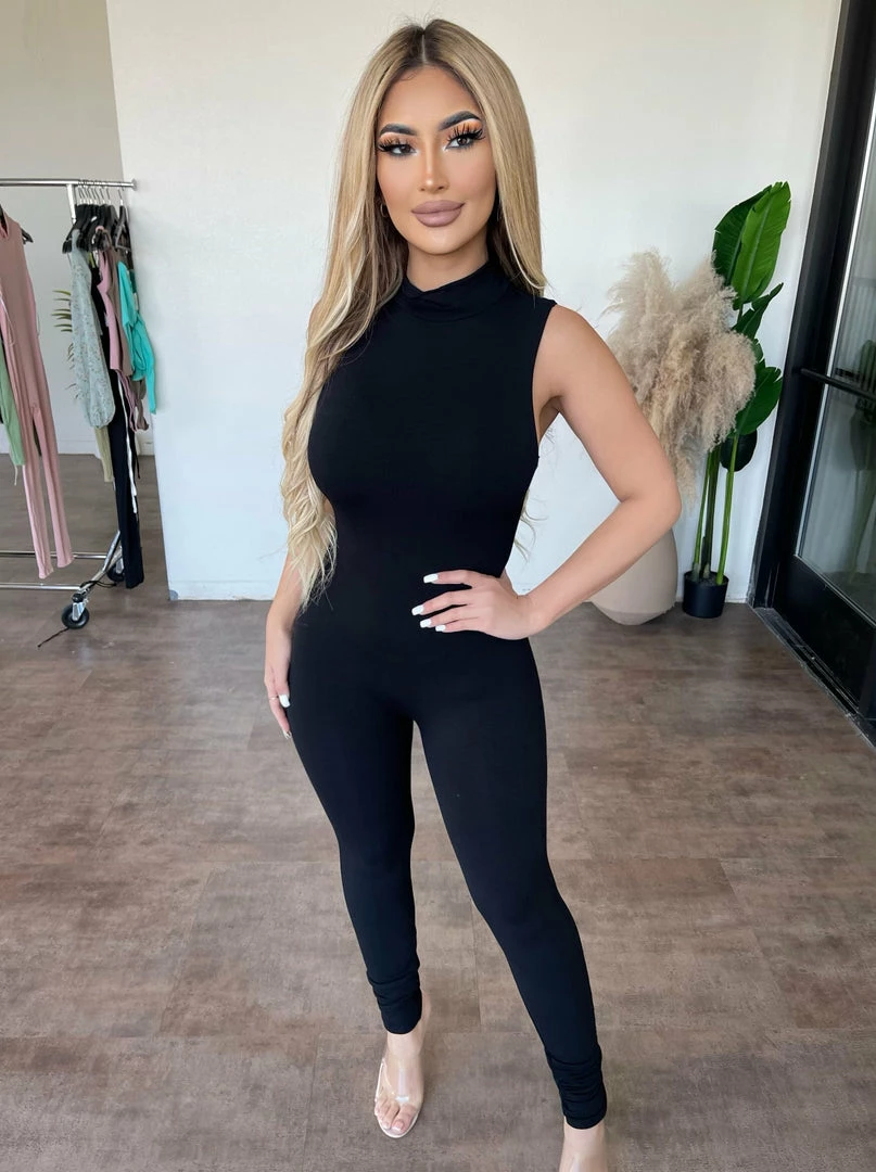 ~Jumpsuit made from nice fitted material with adjustable front zipper detail, Goes great with a cropped distressed denim jacket and heels